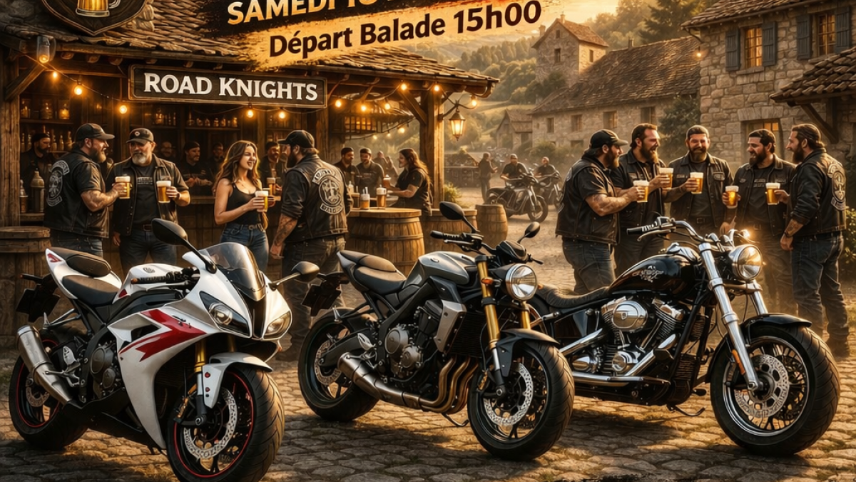 The Road Knights The Road Knights Publié le 15 avril 2026 / Dernière modification le 15 avril 2026 The Road Knights Publié le 15/04/2026 - Dernière modification le 15/04/2026 Le samedi 18 avril 2026 de 15:00 à 19:00 The Road Knights vous attendent nombreux samedi!