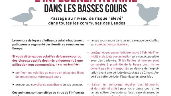 Ci-joint fiche de biosécurité envoyée par la préfecture des Landes pour lutter contre l'influenza aviaire
